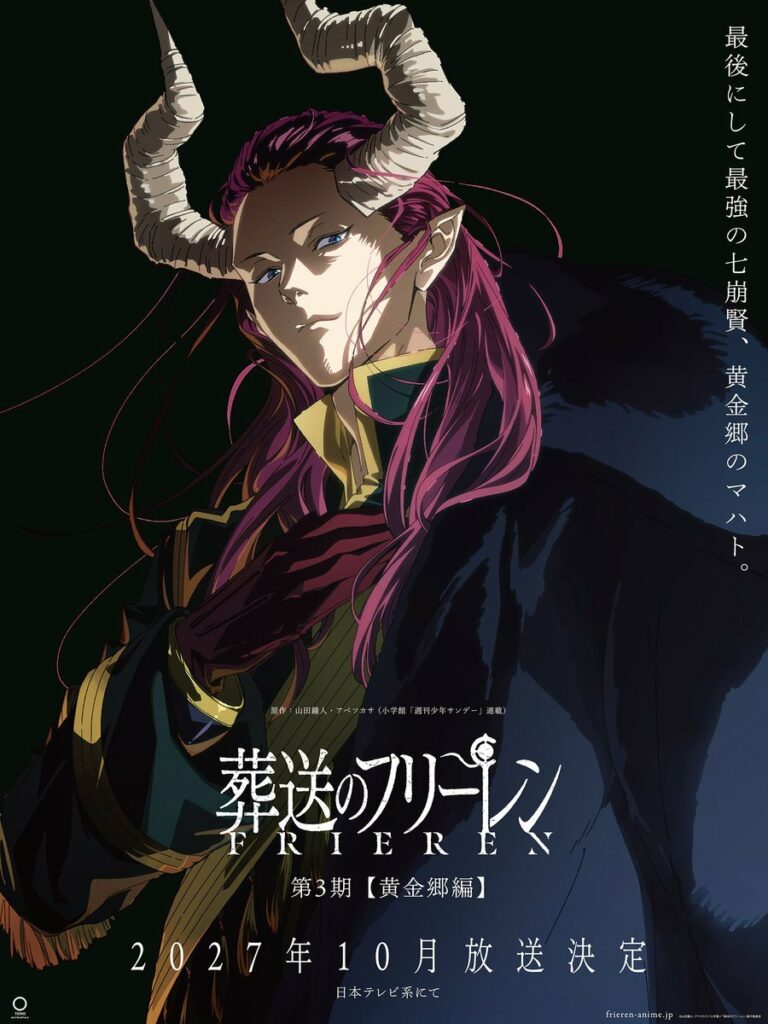 The TV anime Frieren: Beyond Journey’s End, based on the manga by Kanehito Yamada and Tsukasa Abe, will return for a third season titled “The Golden Land Arc”. The new season is scheduled to air in October 2027.