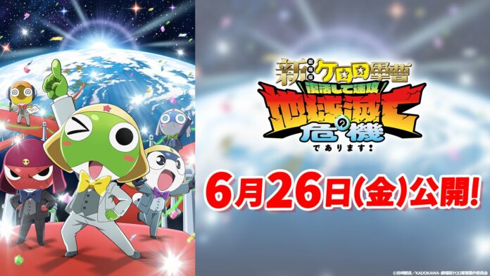 The release date for Shin Gekijōban Keroro Gunsō: Fukkatsushite Sokkō Chikyū Metsubō no Kiki de Arimasu! by Mine Yoshizaki has been set for June 26 in Japan. New characters Aruru and Deruru have also been announced.