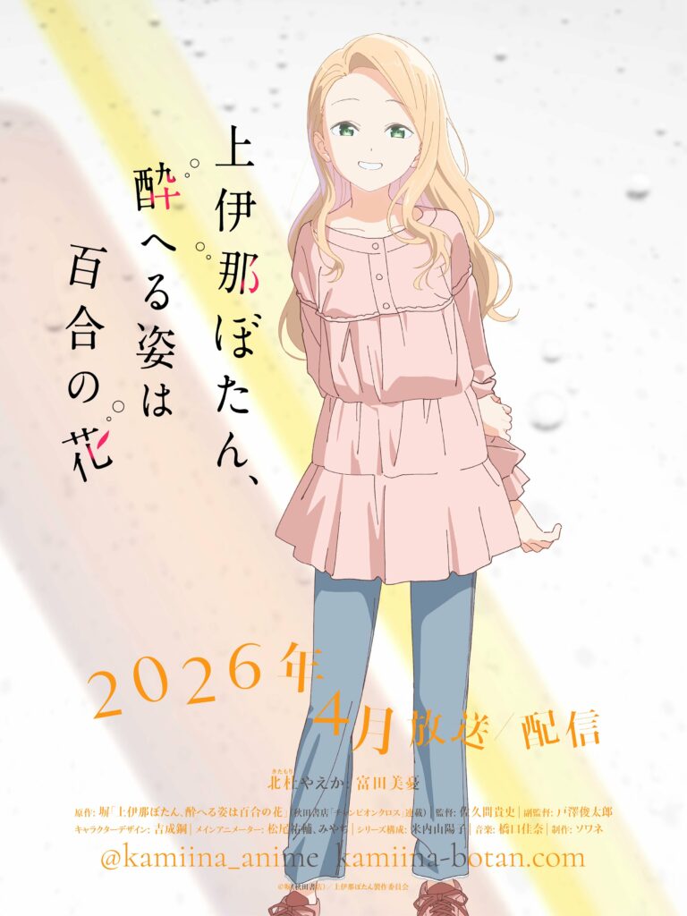 The TV anime Botan Kamiina Fully Blossoms When Drunk, adapted from the original work, has announced that Yaeka Kitamori will voice Miyu Tomita. The series is set to premiere in April 2026.