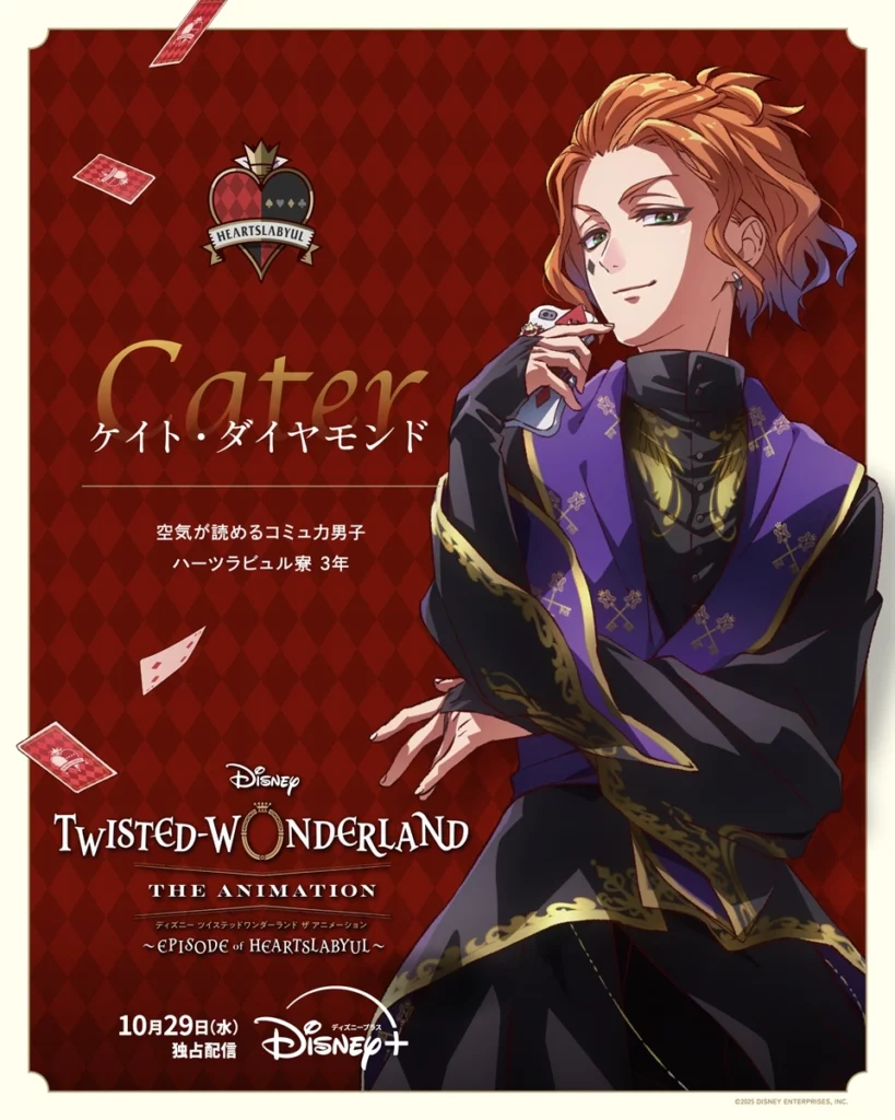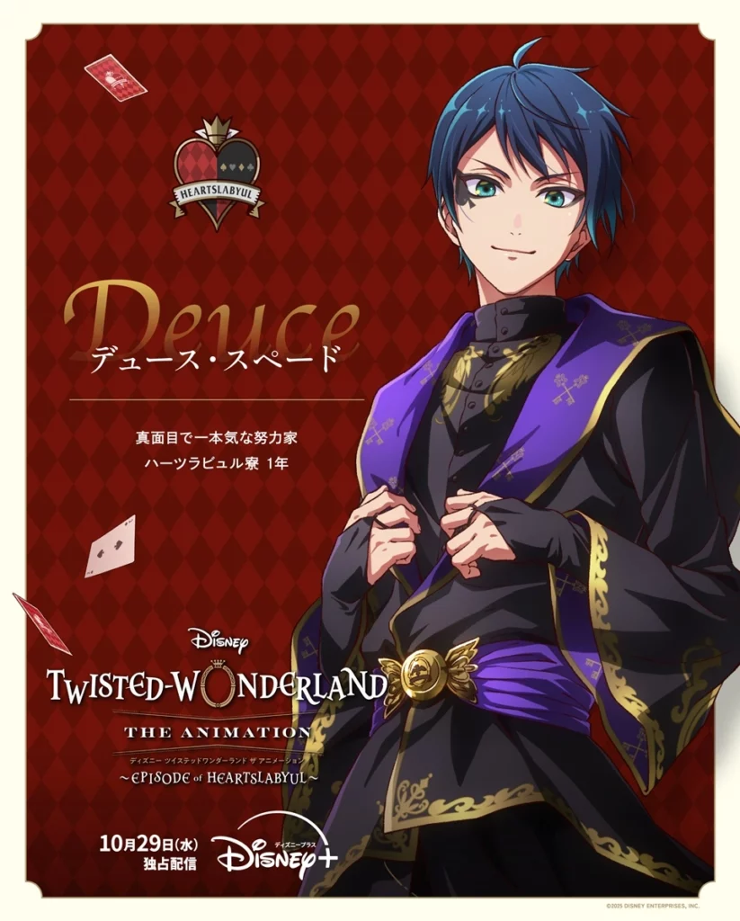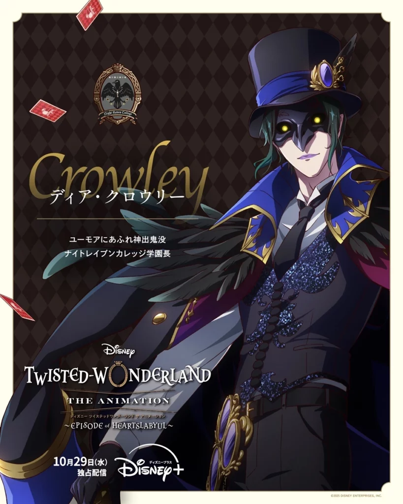 The character posters for the anime Disney Twisted-Wonderland The Animation have been unveiled. The first season will consist of eight episodes and will stream exclusively on Disney+ every Wednesday, starting October 29.