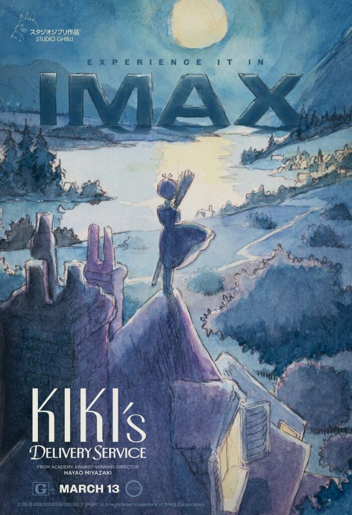 GKIDS has released a new poster for KIKI’S DELIVERY SERVICE to celebrate the film’s upcoming IMAX release. The beloved animated movie from Studio Ghibli will return to theaters in the United States and Canada starting March 13. This special IMAX release will be shown exclusively in IMAX theaters.