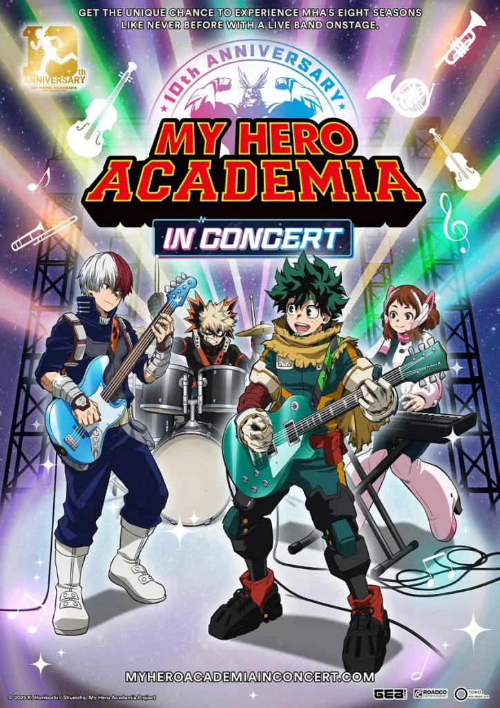 The concert will also include live dubbing performances and a special talk segment with Daiki Yamashita (Izuku Midoriya), Nobuhiko Okamoto (Katsuki Bakugo), and Yuki Kaji (Shoto Todoroki), offering fans a unique immersive experience.