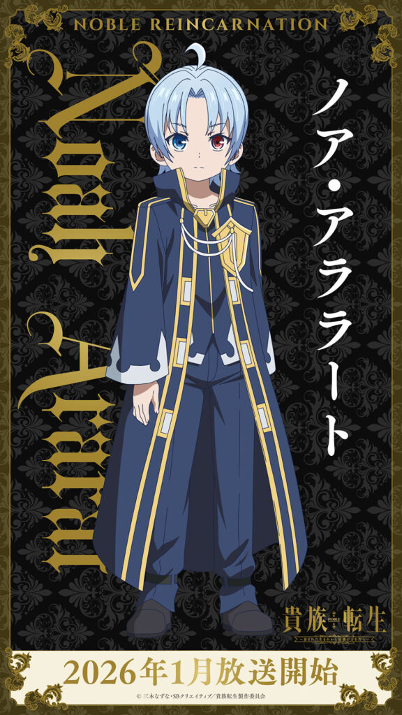 Character visuals for the six main protagonists Noah, Zoey, Shirley Grantz, Alichey, and Gigi from the upcoming isekai governance fantasy anime Noble Reincarnation ~Born Blessed, So I’ll Obtain Ultimate Power~, set to premiere in January 2026, have been officially revealed.