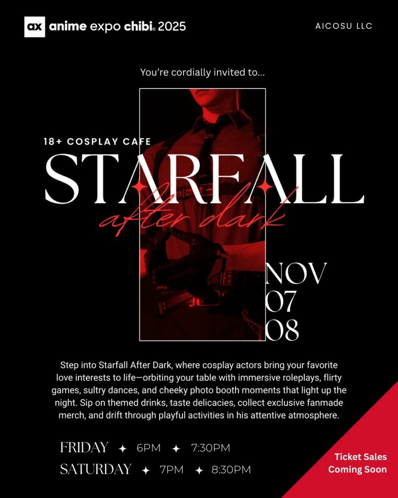 According to Santa Maria, the idea for Starfall After Dark began taking shape long before AX Chibi existed. She and Sylar had run several family-friendly cosplay cafés in the early 2010s and recently found inspiration in adult fan events tied to games like “Love & Deepspace.” She said she longed for more adult-oriented programming at conventions—something intimate and performative without leaning into nightlife or rave culture.