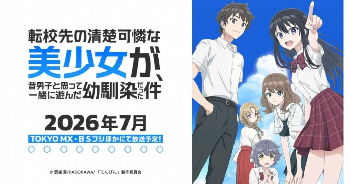 The TV anime Tenko-saki no Seiso Karen na Bishojo ga, Mukashi Danshi to Omotte Issho ni Asonda Osananajimi Datta Ken began airing in July. The first key visual, along with details about the main characters and cast, has now been revealed. The series is set to run for a total of 12 episodes.