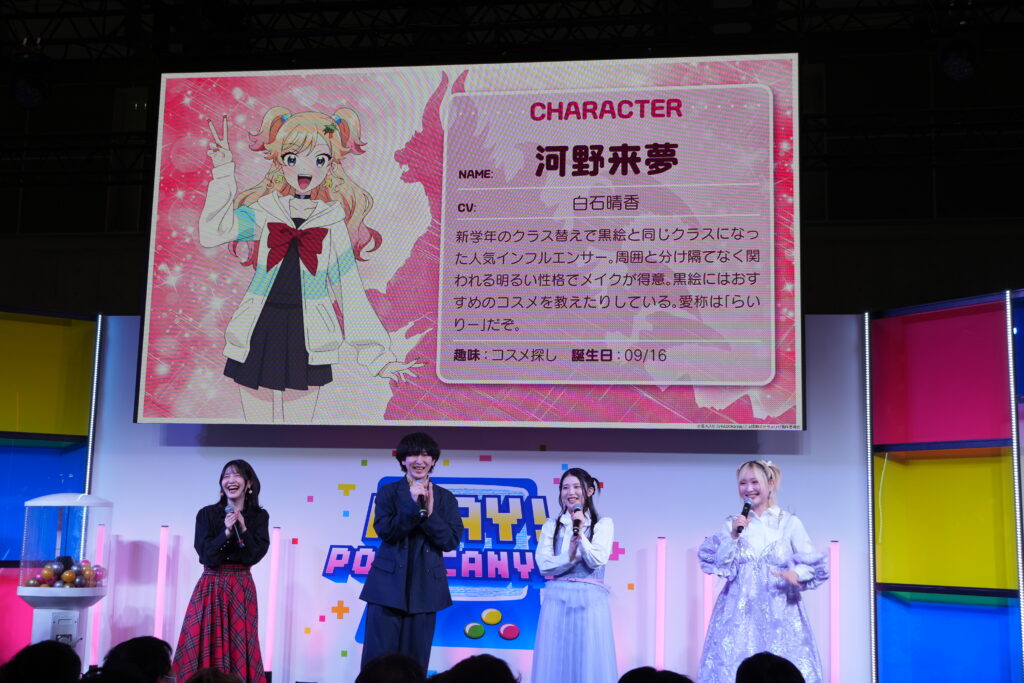 The event, hosted at the PONY CANYON booth, featured cast membersHikari Senga (voice of Kuroe Akaishi),Arata Minami (Daishi Kajita), Akira Sekine (Manatsu Tomosato), and Haruka Shiraishi (Raimu Kono), who appeared on stage to discuss the project and share new updates with fans.